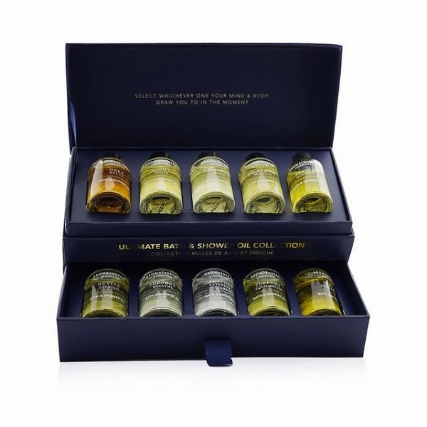 ラグジュアリーキット感のある外観はギフト用としても人気が高い、10種類のバスアンドシャワーオイル 。