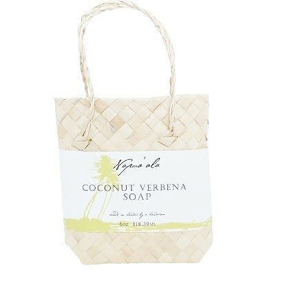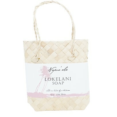 プレゼントにも嬉しい、ハワイの伝統工芸おラウハラ編みの可愛いミニバッグに石鹸が入っています。