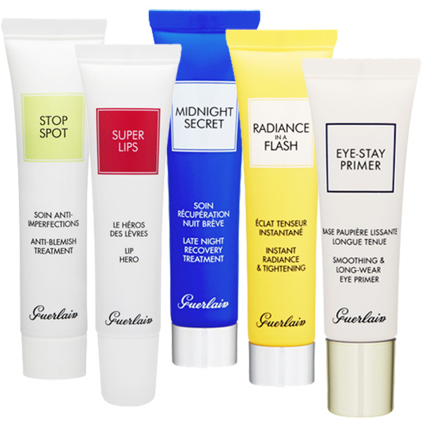 過剰な皮脂分泌によるトラブルを抑えるストップスポット、ひと塗りで、柔らかくふっくらなめらかな唇へと導くリップケア・スーパーリップ、ケア力が高まる睡眠中に働きかける美容液・ミッドナイトシークレット、顔色が冴えない時、夜のお出かけ前などに最適のトーンアップ美容液・ラディアンスフラッシュ、美しく印象的な目もとに導くアイシャドウベースのアイ-ステイ プライマー。